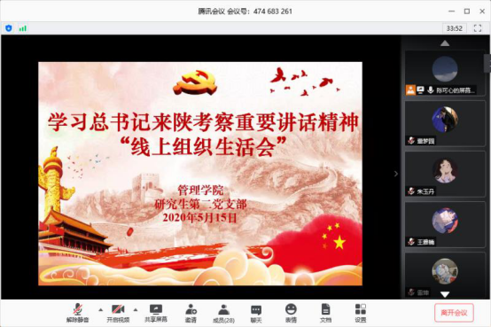 5月15日下午,公司研究生第二党支部利用腾讯会议网络平台召开了“学习总书记来陕考察重要讲话精神”线上组织生活会,通过语音会议的形式组织党员学习、交流,积极落实上级党组织部署和要求,参加本次组织生活会的有研究生第二党支部党员28名。会议由研究生第二党支部组织委员陈可心主持。