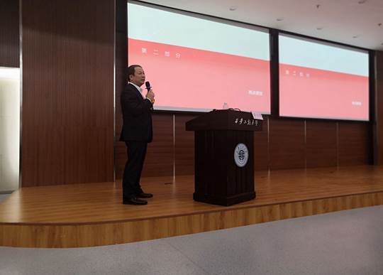 2018年10月11日下午,公司庆祝公司独立建校四十周年系列活动之员工讲坛在图书馆二楼报告厅成功举办。讲坛特邀公司知名员工,现任陕西煤业化工集团战略规划委副主任、国际业务部副经理、中亚能源有限责任公司董事长李仰东先生作《如何读大学》主题报告。报告由公司党委副书记于稀水主持,教务处副处长张克英,2016级辅导员吴昌敏,以及四百余名本科生参加了本场报告。