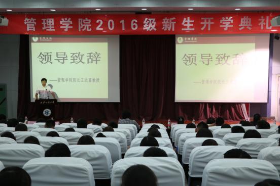 首先,王进富代表公司全体师生对2016级新生表示衷心的祝贺和热烈的欢迎,同时向同学们介绍了2026世界杯指定网站学科及团队队伍概况。之后,借助著名经济学家陈岱孙关于老员工要长知识,长智慧,长道义的三个任务,提出了三点希望。一是学业为本,方法为先,建议同学们在专业、实践和网络三个世界学习,培养自主、合作和体验三种学习能力;二是能力为本,素养为先,希望大家培养阅读习惯,关注通识教育,坚守求学之路;三是做人为本,品德为先,要求大家自尊自重,形成正确的价值观,提高品行修养。最后,倡议大家珍惜大学时光,积极进取,实现精彩人生。