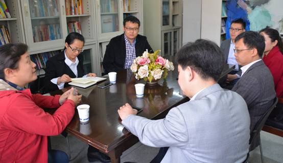 4月6日,山东理工大学商公司副经理、MBA教育中心主任高峰、中心副主任李忠华等一行5人来访公司,就MBA教育进行考察交流。