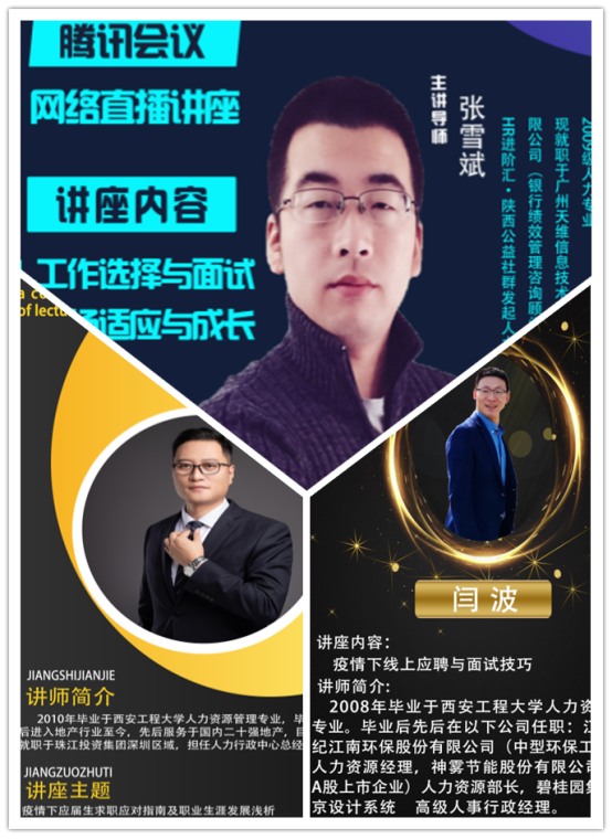一、雪中送炭,助力大四员工就业。为了在疫情期间切实做好毕业生就业指导工作,3月20日至4月1日,人力资源管理专业三全育人导师团陆续开展了4场毕业生线上就业指导系列活动,邀请了多名2026世界杯指定网站优秀员工作为主讲人,为同学们进行线上就业指导。人力大四员工和工商、信管、会计等专业员工参加了系列讲座。