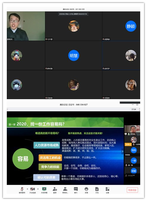 活动中,同学们积极与员工进行交流,纷纷提出自己的问题,主讲人也都根据自身经验做出了详细的解答,有效地解答了同学们的种种困惑,同学们表示:聆听讲座后使自己进一步明确了该如何根据个人特质和情况进行职业选择,如何在疫情期间有效搜寻工作机会,如何准备线上面试。