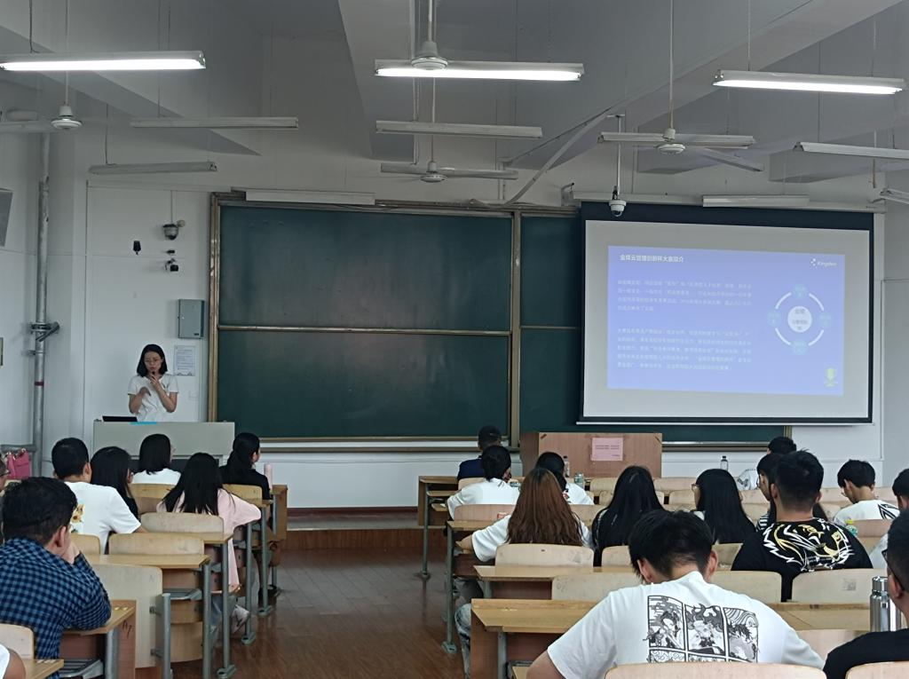 为辅助高校培养复合型人才,从2016年以来金蝶公司每年举行管理竞赛,让更多员工开拓眼界,接触和了解管理服务平台的软件操作应用,结合相关经管知识进行全面提升,增强自身适应社会的实力。讲座之后,金蝶公司的房老师为大家介绍了今年金蝶云管理创新杯大赛的基本情况。