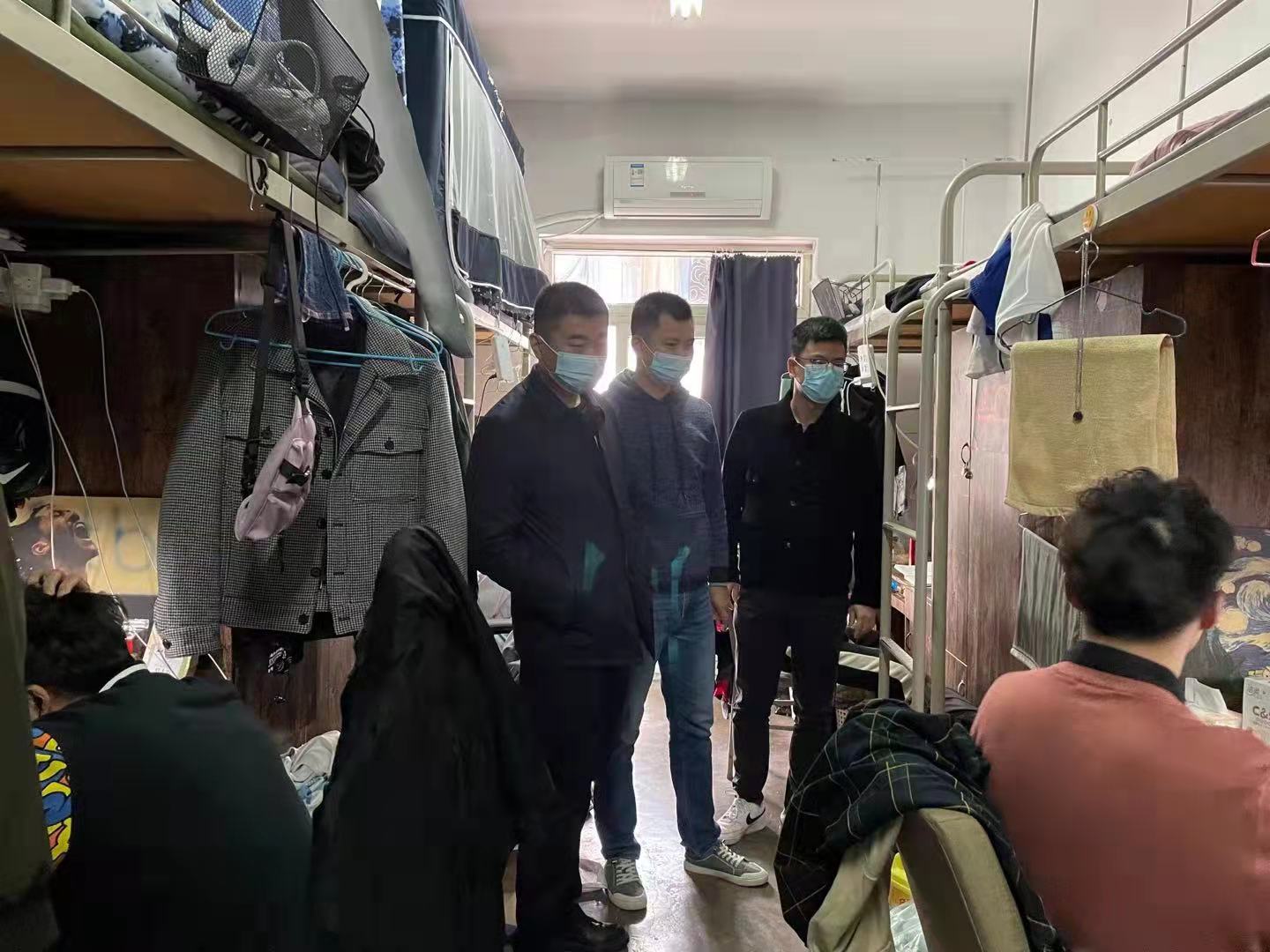 2021年11月3日上午,为了解疫情防控期间管院员工的生活学习状况,,公司党委副书记于稀水带队,员工工作办公室全体辅导员检查了本科及研究生员工宿舍的卫生防疫和线上学风状况。