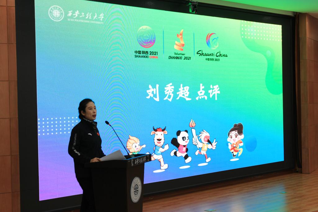 刘秀超代表国家体育总局对各位师生志愿者的辛苦付出表示衷心的感谢,对十四运专业志愿者的赛事服务表现予以肯定,对全体志愿者在十四运会志愿服务中展现“奉献、友爱、互助、进步”的志愿服务精神给予赞扬!她表示,正是每一个人在平凡的岗位上默默耕耘才呈现出一届精彩圆满的体育盛事,希望同学们从宝贵的志愿经历中收获成长和进步,以保持饱满的精神,在今后的学习生活中勇担使命、不懈奋斗。