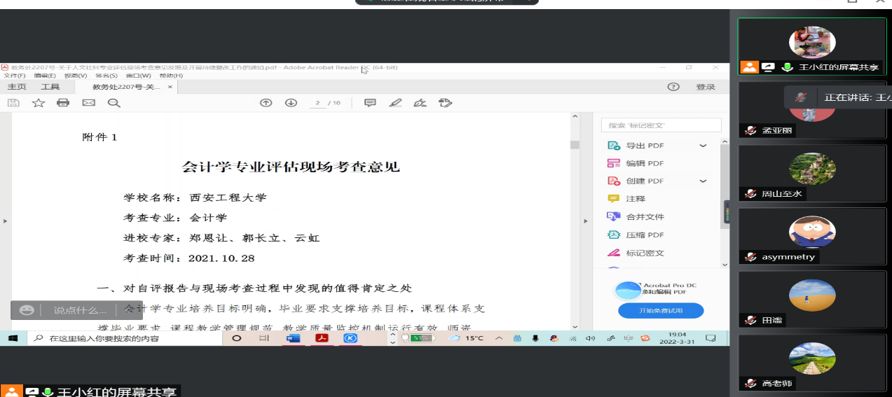 为推动专业发展,督促专业基于专业评估报告考核结果进行持续改进,2022年3月31日,会计系召开了“会计专业评估反馈会及持续改进布置会”。由系主任王小红老师主持,全体会计系教师参加。