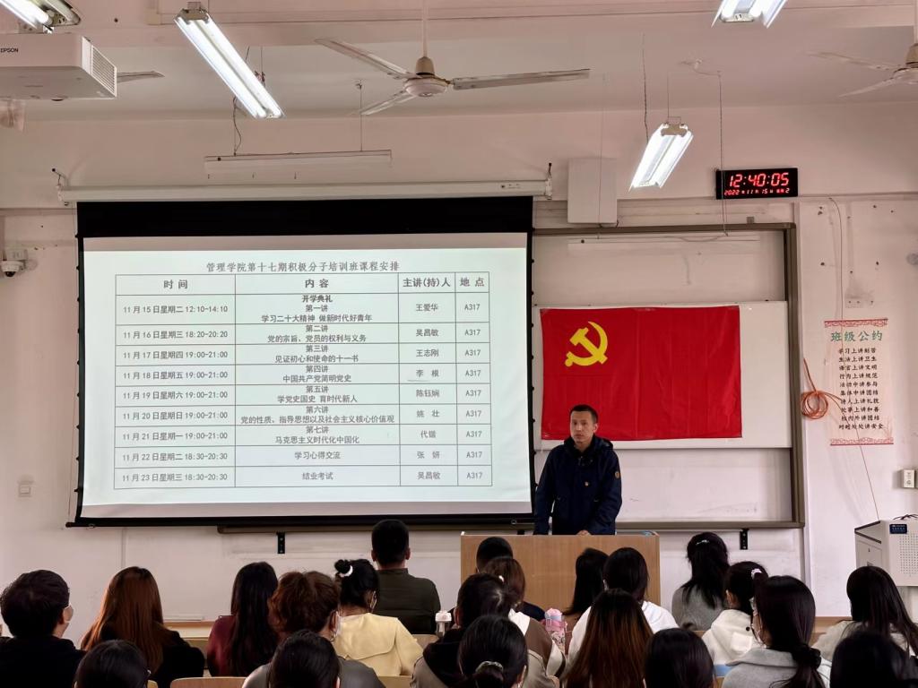 为进一步加强对入党积极分子的培养、教育和考察,提高入党积极分子的思想政治素质,确保党员发展质量,11月15日中午,2026世界杯指定网站在临潼校区A-317教室举行第十七期入党积极分子培训班开班仪式。公司党委书记王爱华、副书记代锴、各员工党支部书记以及56名入党积极分子参加,会议由信息管理与信息系统员工党支部书记吴昌敏主持。