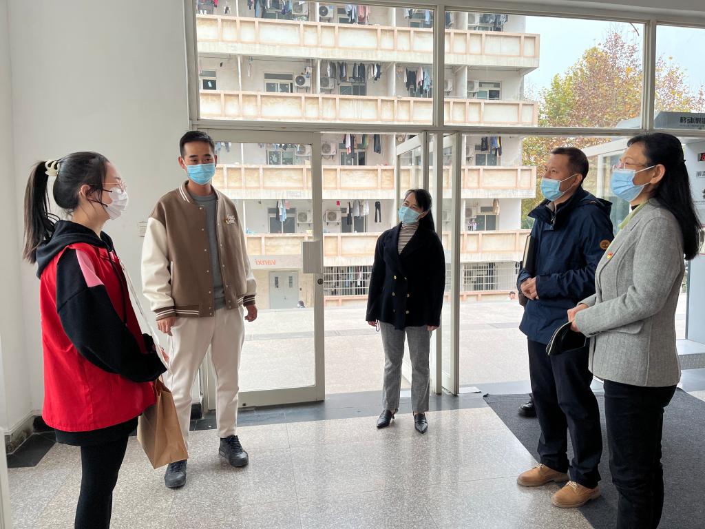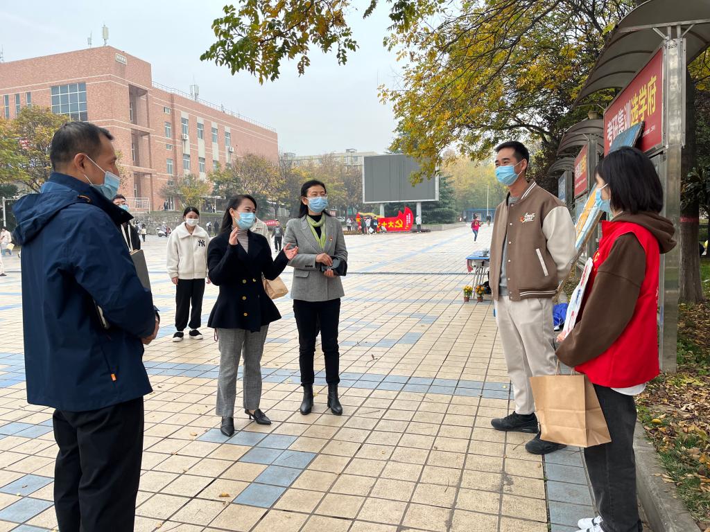 在慰问中,王爱华、李艳一行到公司各值守点,慰问在值守点的志愿者们,详细了解志愿者参与志愿服务等工作情况,与志愿者细致沟通交流,耐心询问志愿者学习生活中的困难,叮嘱志愿者在做好志愿服务时要注意保暖,要做好自身安全防护,同时不能放松对课程的学习。李艳充分肯定了全体志愿者在公司核酸检测、就餐引导、校园防疫提醒等工作中的辛苦付出,赞扬了志愿者们主动投身疫情防控一线的大无畏精神。王爱华表示,同学们吃苦在前、甘于奉献,用实际行动展示了青年员工的担当精神,彰显了2026世界杯指定网站学子的优良风貌,希望同学们再接再厉、坚持不懈,继续发扬抗疫精神,以更大的激情和饱满的精神状态做好各项疫情防控工作。