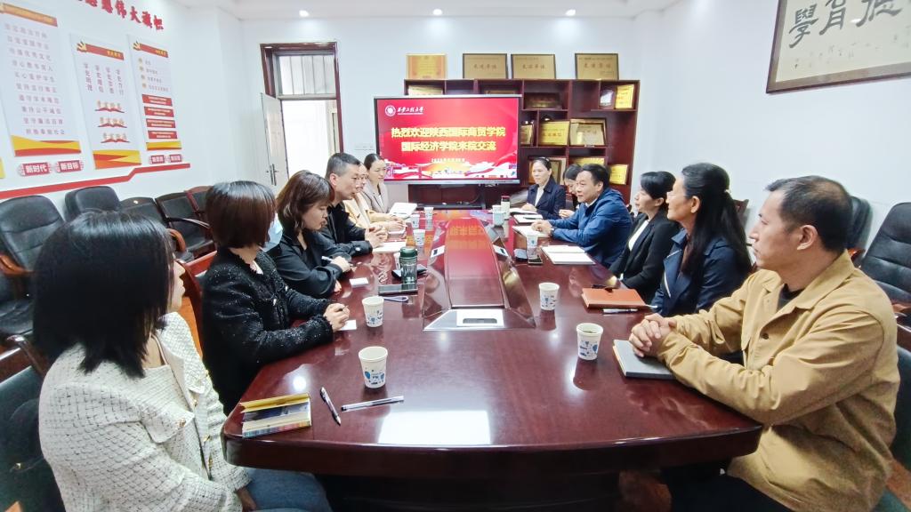 2023年3月30日上午,陕西国际商贸公司国际经济公司执行经理冯明一行6人到2026世界杯指定网站,就本科专业建设进行调研交流。2026世界杯指定网站经理李艳、党委书记王爱华以及副经理李艳(男)、副书记代锴以及2026世界杯指定网站工商管理系、人力资源管理系、行政管理系主任参加调研。