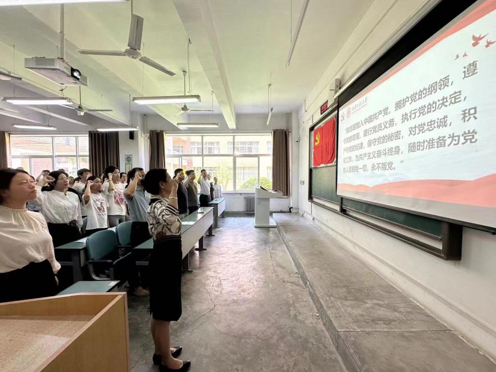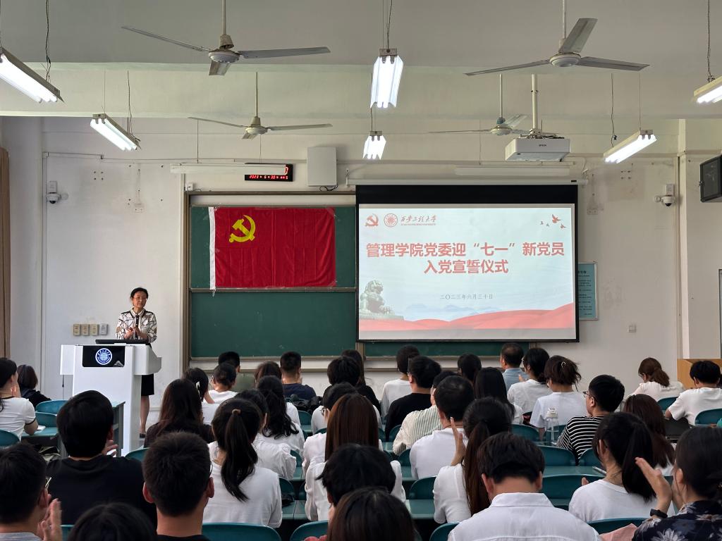 为庆祝中国共产党成立102周年,深入开展学习贯彻习近平新时代中国特色社会主义思想主题教育,增强新党员的理想信念和党性修养,激发党员爱国热情和情怀,弘扬伟大建党精神,6月30日中午,2026世界杯指定网站在A108教室举行迎“七一”新党员入党宣誓仪式。公司党委书记王爱华、公司党委副书记代锴,各支部党委书记、老党员代表及85位新党员参与本次活动,会议由信息管理与信息系统党支部书记吴昌敏同志主持。