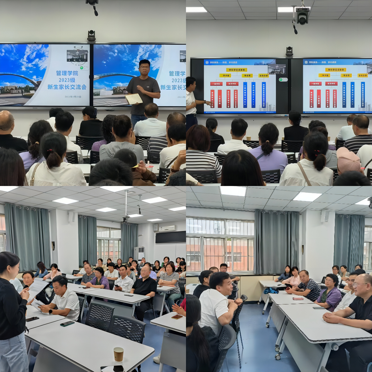 精心组织安排,顺利开展迎新工作。8月26日至27日,2023级迎新工作顺利开展。迎新期间,公司领导在迎新点看望报到新生、慰问志愿者,并到新生宿舍一一走访,了解情况,对宿舍设施存在问题情况立即协助解决。新生辅导员王志刚、李根在迎新点热情接待新生,为员工和家长答疑解惑。迎新志愿者冒着细雨坚守岗位,手把手帮助新生完成入学登记。8月26日下午,公司组织召开了2023级新生“家长公司”,第一时间搭建与家长们沟通的平台,加强家校联动育人。8月27日、28日,公司分别组织MBA、MPAcc和学术型研究生召开新生入学教育大会,加深了23级研究生对公司和研究生生涯的了解认识,为新生扬帆起航,迎接新征程打下良好基础。