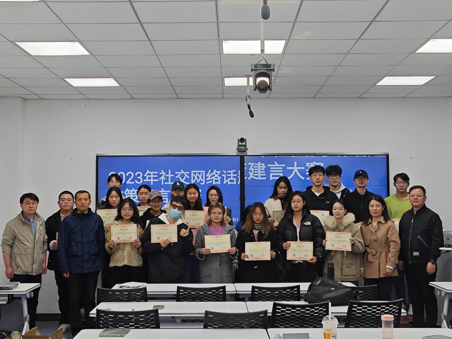 2023年11月21日,“2023年社交网络话题政策建言大赛”员工作品分享暨颁奖仪式在临潼校区人文楼举行。公司党委副书记代锴、经理助理陈恒、实验室主任郭晶、经济贸易系系主任邵鹏参加分享会并向获奖员工颁奖,会议由邵鹏主持。获奖员工代表郑小颖、武悦、邱小洁分别向与会师生分享了自己的参赛作品,陈恒老师对大赛进行点评。