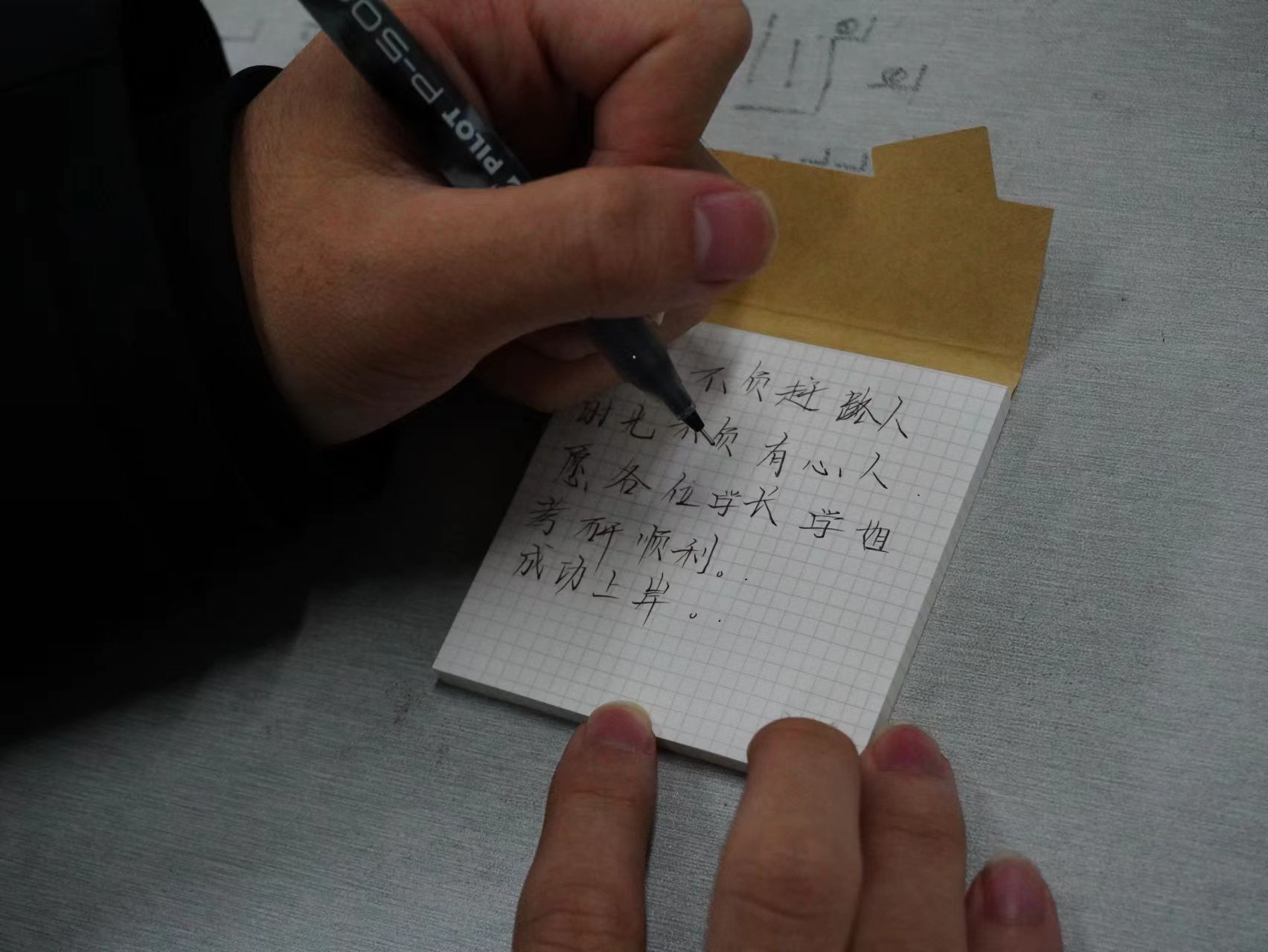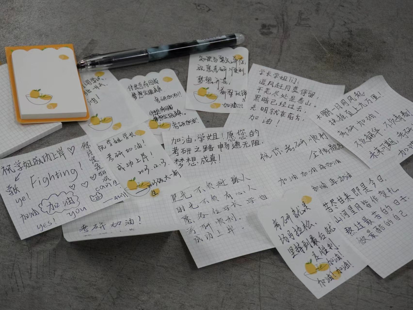 12月14日至18日,公司低年级同学纷纷自发为考研的学长学姐们送上真诚的祝福,祝愿他们考试一帆风顺。他们表示,将以学长学姐为榜样,合理规划自己的老员工涯,积极面对以后的学习生活。