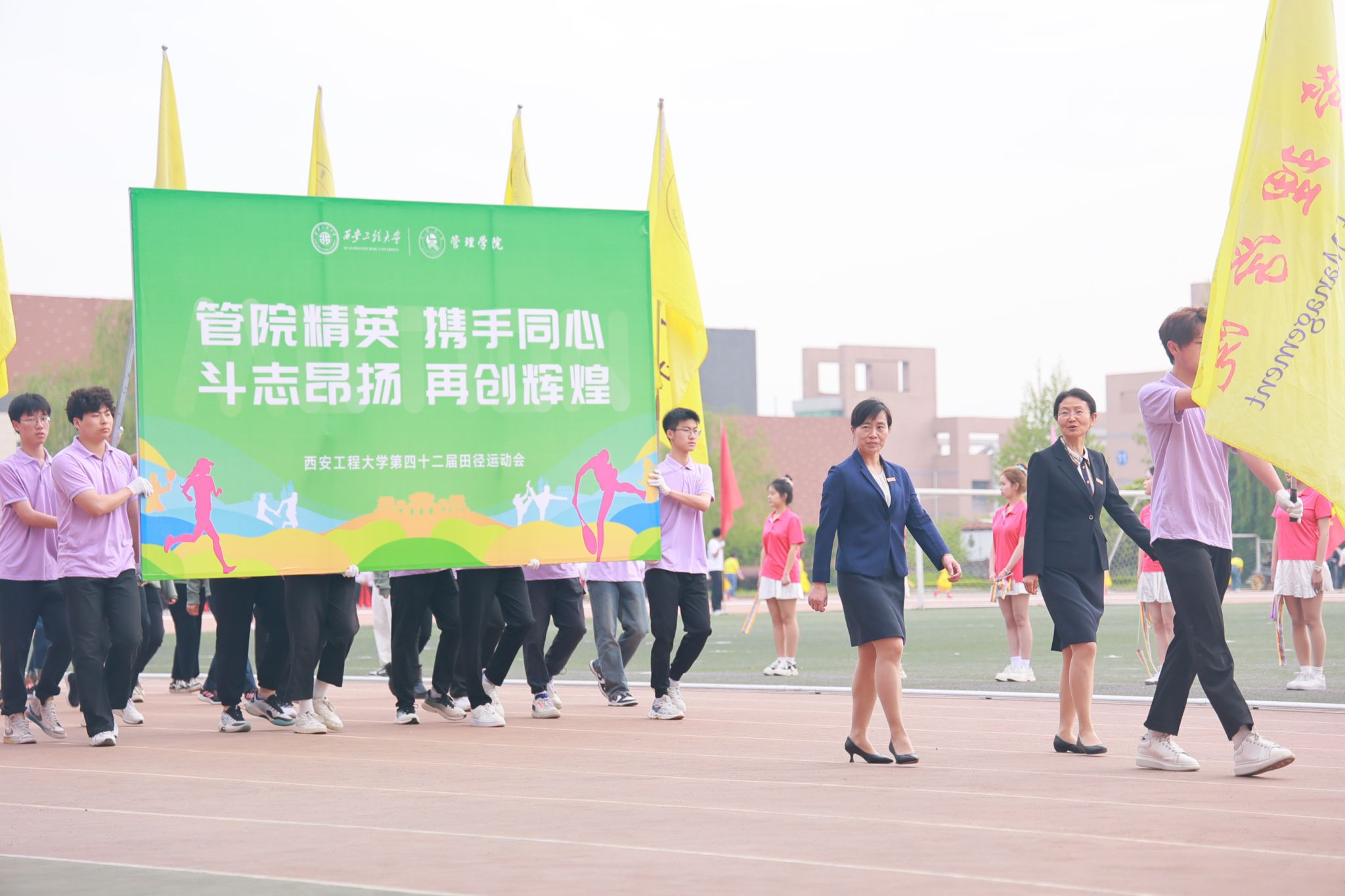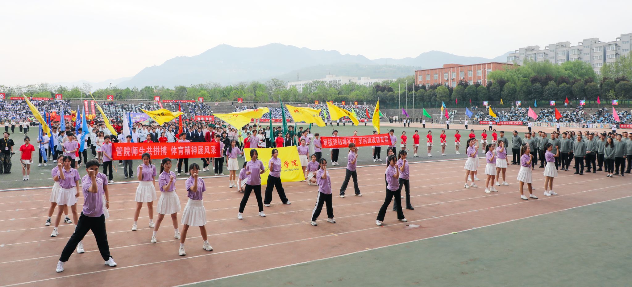 鲜衣怒马正少年,披荆斩棘勇争先!开幕式上群亮相,管院师生展风采。身着紫衣,脚下踏风而来;向阳花开,青春鲜艳明丽。整齐嘹亮的口号,富有青春气息的舞蹈,充分展现公司师生的青春与活力。