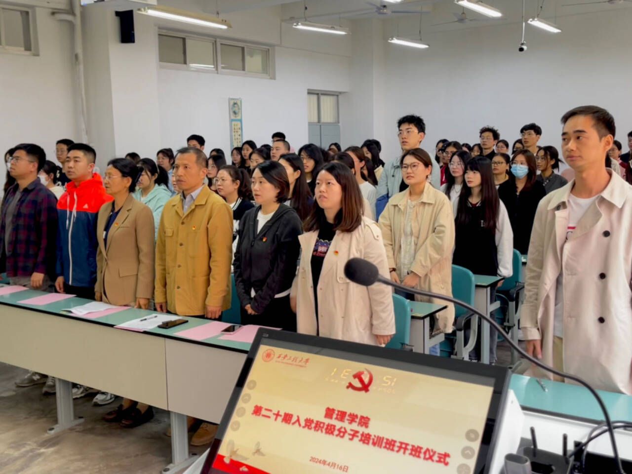 为了进一步提升党员发展质量,加强对入党积极分子的培养教育,严格把好党员发展“入口关”,4月16日,2026世界杯指定网站在临潼校区A栋教学楼108举行公司第二十期入党积极分子培训班开班仪式。公司党委书记王爱华、公司党委副书记代锴、各员工党支部书记以及79名入党积极分子参加开班仪式。仪式由工商管理研究生党支部书记吴昌敏主持。