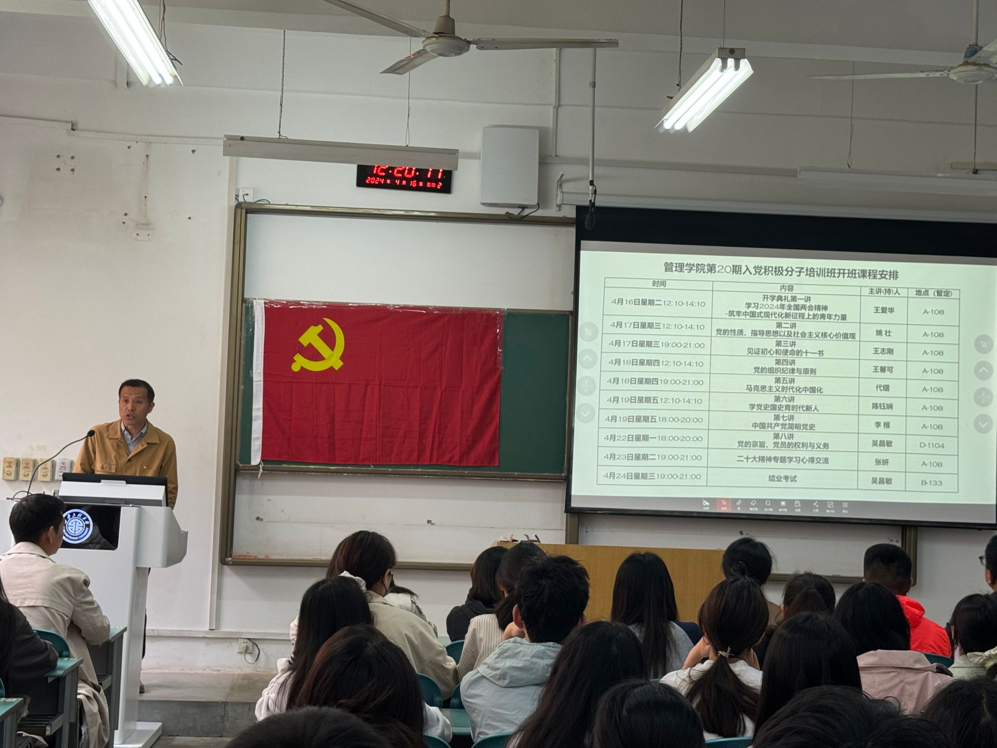 随后,代锴对党课培训课程进行了安排和说明,并对课堂纪律做了具体要求。