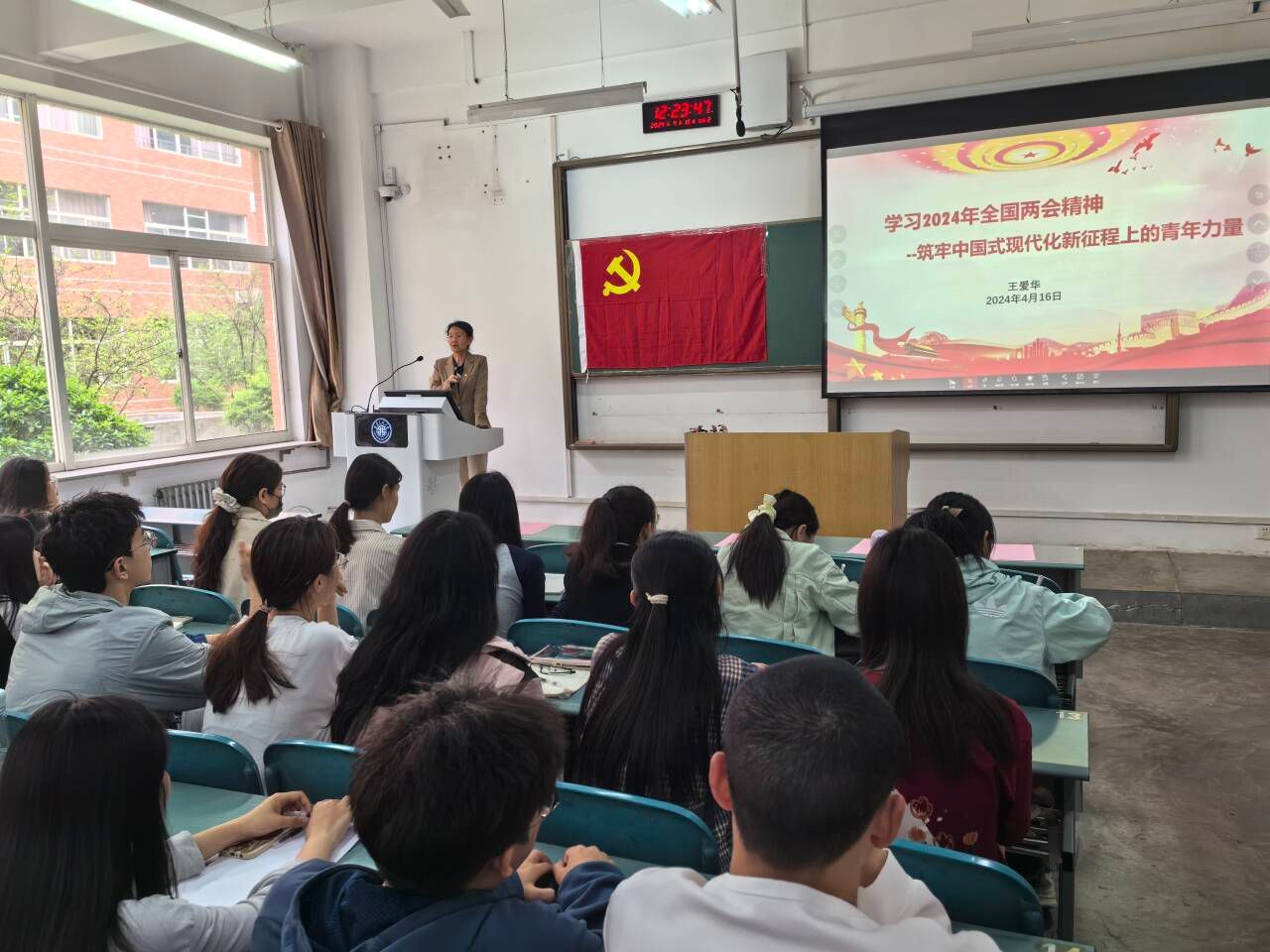 仪式结束后,王爱华为同学们作培训第一讲:《学习2024全国两会精神——筑牢中国式现代化新征程上的青年力量》。(撰稿:吴昌敏;审核:王爱华)