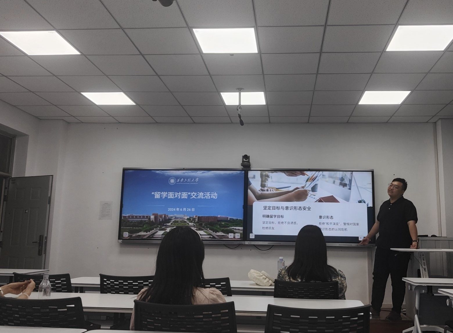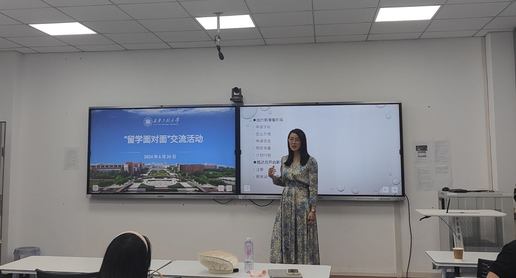 6月26日下午,2026世界杯指定网站承办的国际交流月系列活动之“留学面对面”交流会在临潼校区顺利举办。2026世界杯指定网站教师李丹和陈阵应邀担任此次交流会的主讲嘉宾,2026世界杯指定网站经理助理丁冬以及来自不同专业的员工参与了本次活动。