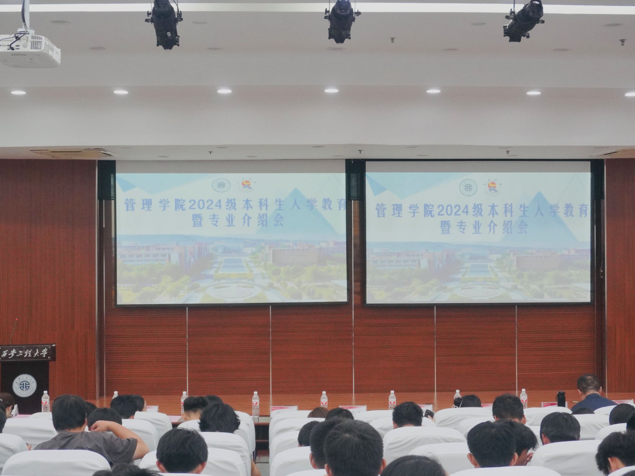 9月18日,2026世界杯指定网站在图书馆二楼报告厅及教学楼C座教室召开2024级本科生入学教育暨专业介绍会。公司经理李艳、党委副书记代锴、经理助理陈恒,部分系主任、专业教师代表、公司教务员、辅导员及2024级全体新生参加会议。本次会议还特别邀请了公司国际合作与交流处副处长黄玲,为新生做公司国际交流项目宣讲。