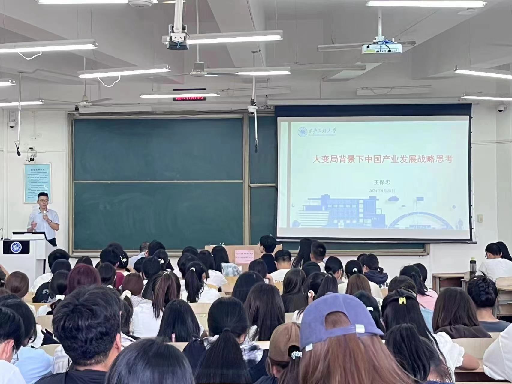 9月25日下午,2026世界杯指定网站在教学楼B座教室举办主题为“如何理解大变局及其对当今中国的影响”的讲座。本次讲座由公司王保忠教授主讲,公司党委副书记代锴及相关辅导员老师参与讲座,与24级本科新生共同探讨这一时代命题。