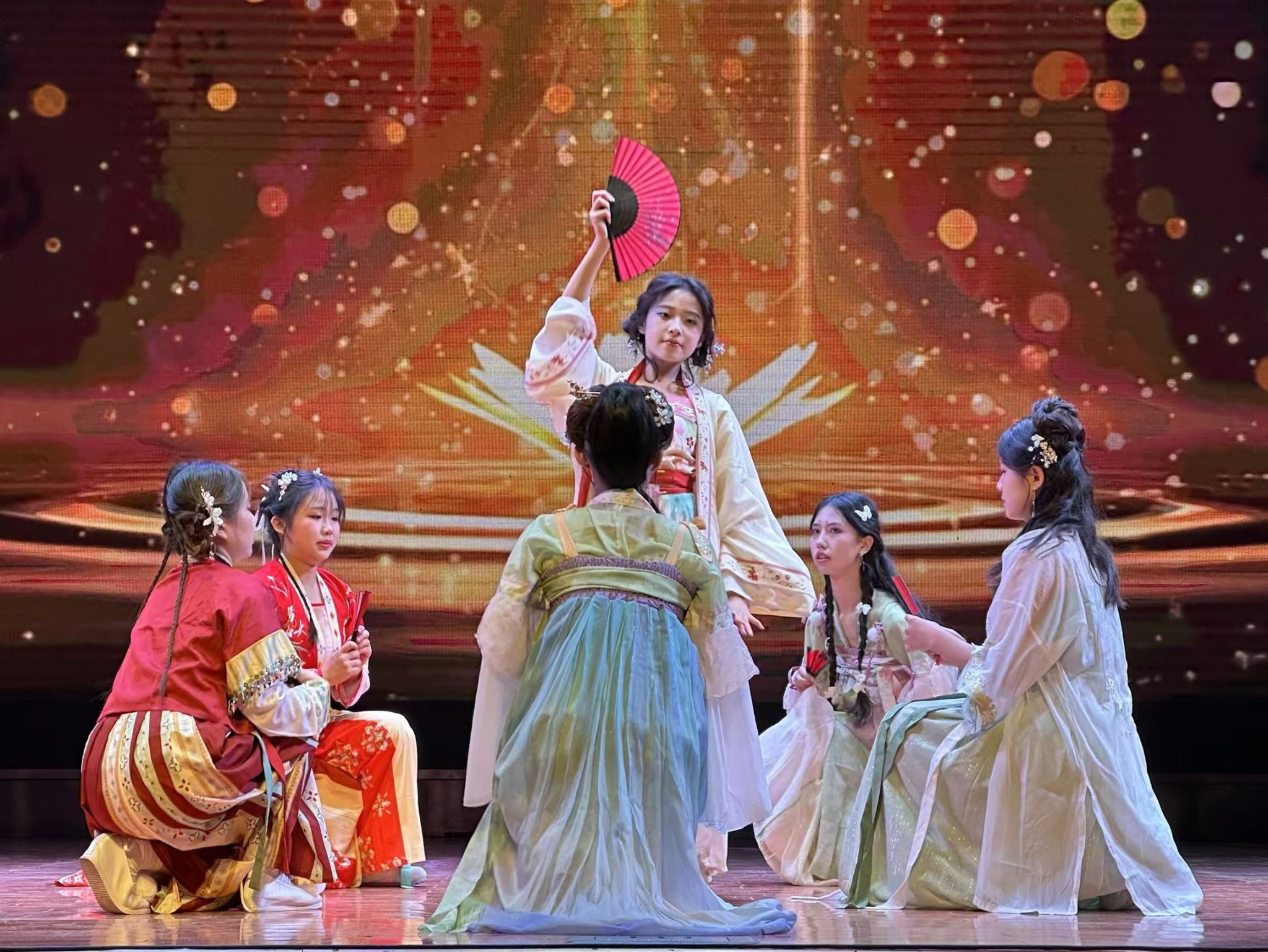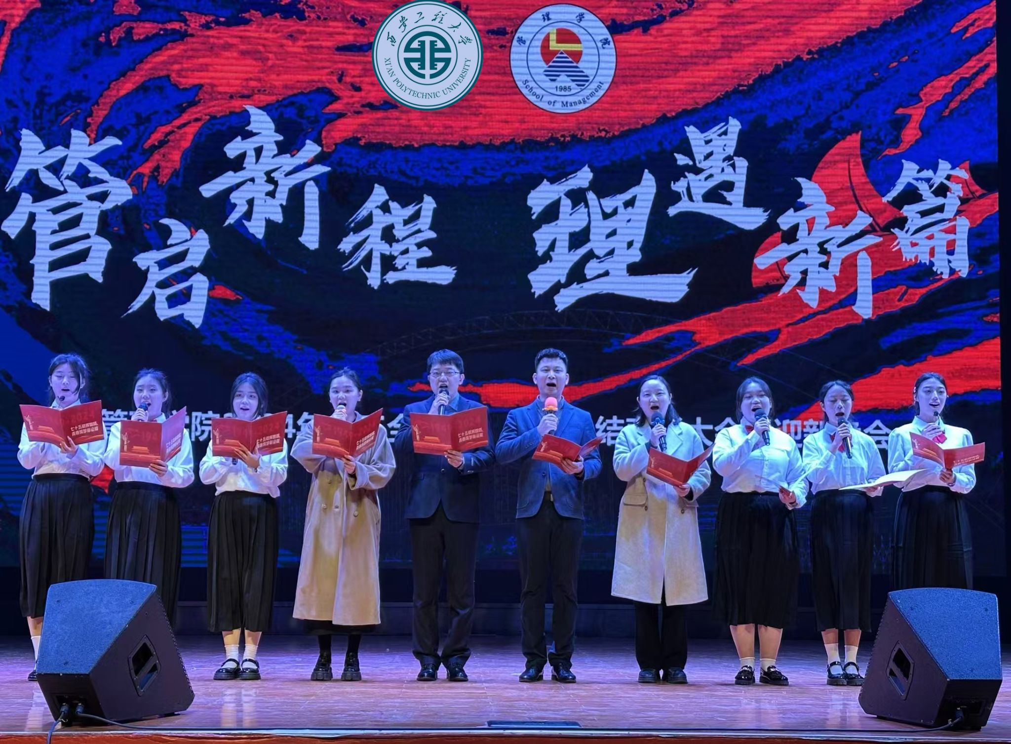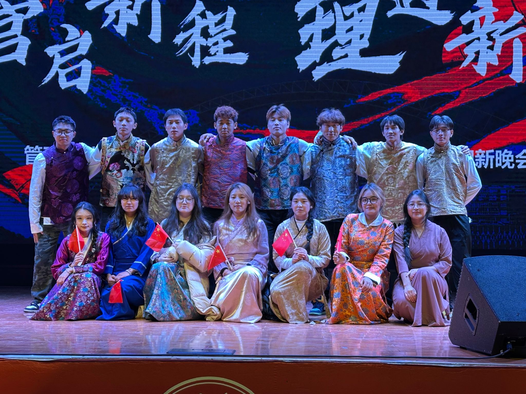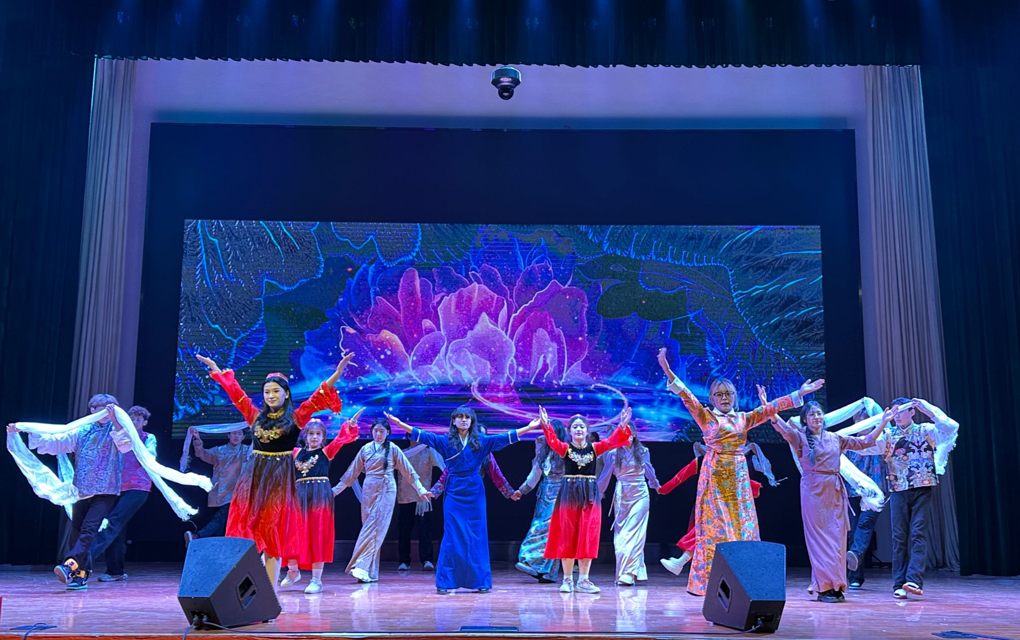 本次表彰大会共分为“立德篇”“勤学篇”“笃行篇”三个篇章,通过歌舞、朗诵、合唱等美育实践演出,展现了管院学子积极向上的青春风貌。其中,舞蹈《天山藏韵》以其独特的民族风情,生动诠释了“民族团结一家亲”的深刻内涵;师生朗诵节目《七十五载辉煌路,青春筑梦新征程》则深情回顾了新中国成立75年来的伟大历程,传递了师生对祖国的无限热爱与自豪。