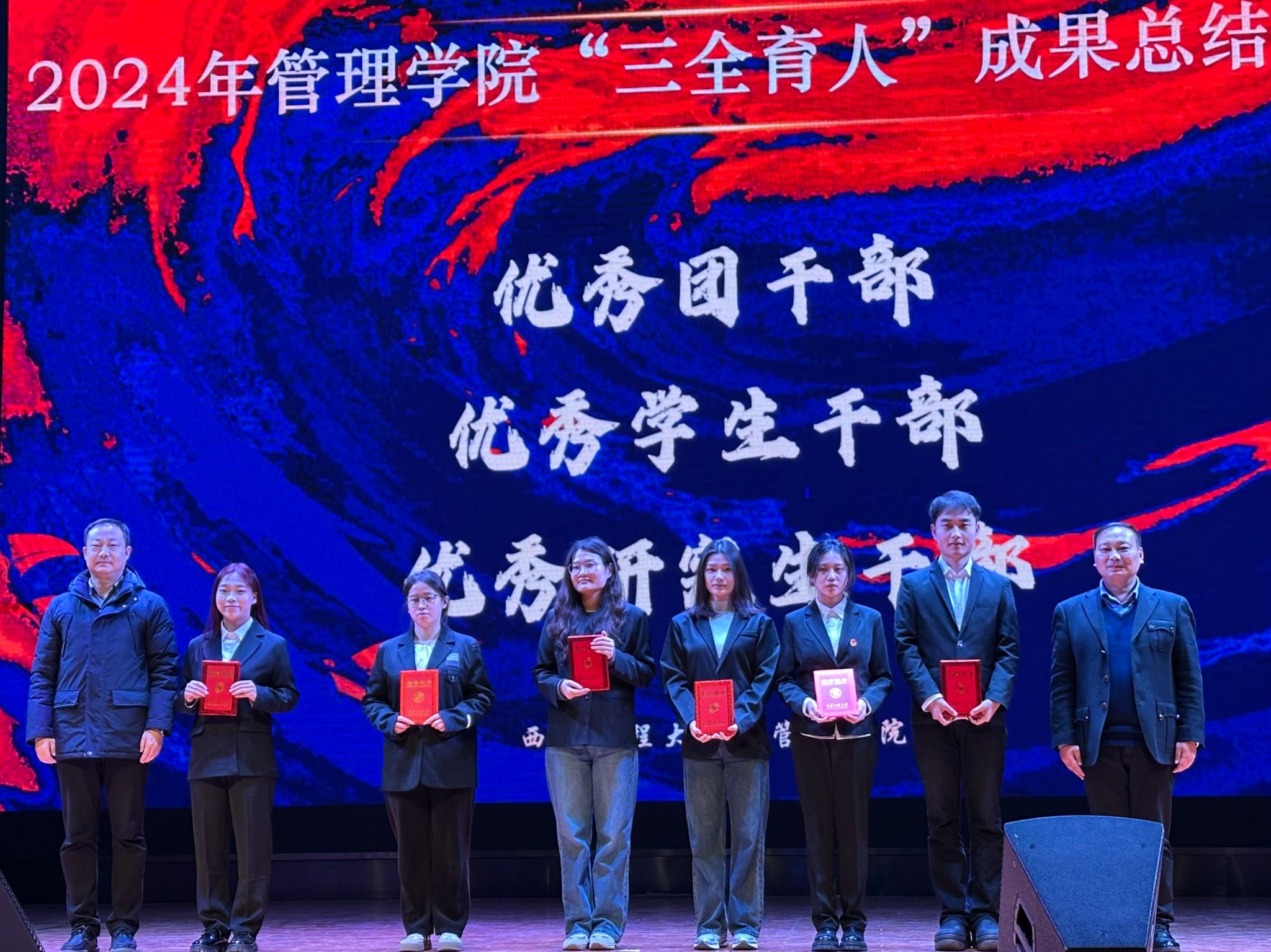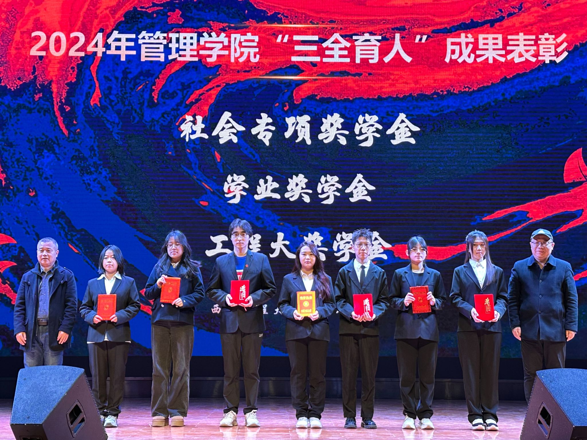 12月16日,2026世界杯指定网站在临潼校区老员工活动中心举办2024年“三全育人”成果表彰大会暨“管启新程 理遇新篇”迎新晚会,公司党委委员、党委统战部部长张冬梅、党委学工部部长王志、党委研究生工作部专职副部长赖斌、校团委书记刘俊富、人才招聘工作处副处长付刚,以及公司党委书记王爱华、党委副书记代锴、经理助理陈恒,公司“三全育人”导师团代表、全体辅导员与2024级本硕新生600余人参加活动。本次活动还特别邀请到公司“爱国主义教育基地”共建单位71897部队沙家浜营营长臧青松、公司2004级员工刘全红、2007级员工景志阳作为嘉宾共同参会。