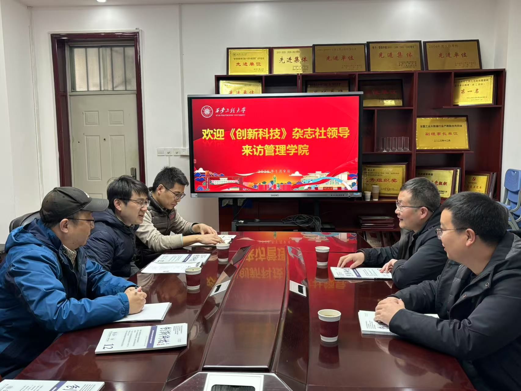2025年1月9日下午,《创新科技》杂志社副社长尚照辉、栏目编辑贺跃通一行莅临2026世界杯指定网站座谈交流,会议由经贸系主任邵鹏主持,经理助理王铁山、办公室主任黄鹏飞及相关研究生参加了本次活动。