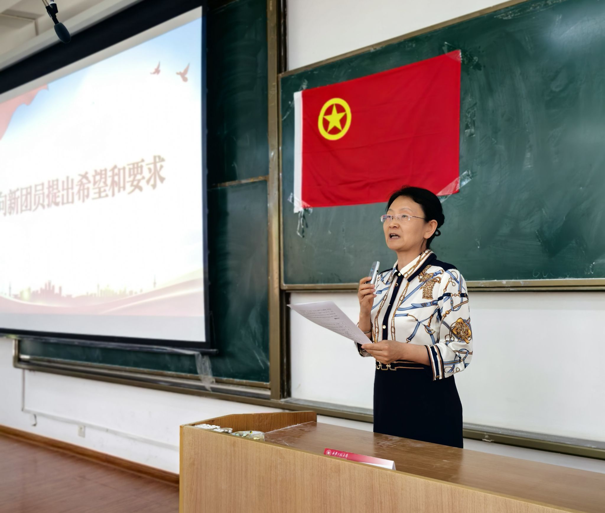 王爱华就如何做一名优秀的共青团员向同学们提出三点要求,一是要坚定理想信念,听党话、跟党走;二是要勤奋刻苦学习,争做新时代栋梁之材;三是要发挥模范作用,展现共青团员良好形象。她希望同学们以入团为新的起点,牢记党的嘱托,努力成为有理想、敢担当、能吃苦、肯奋斗的新时代好青年。