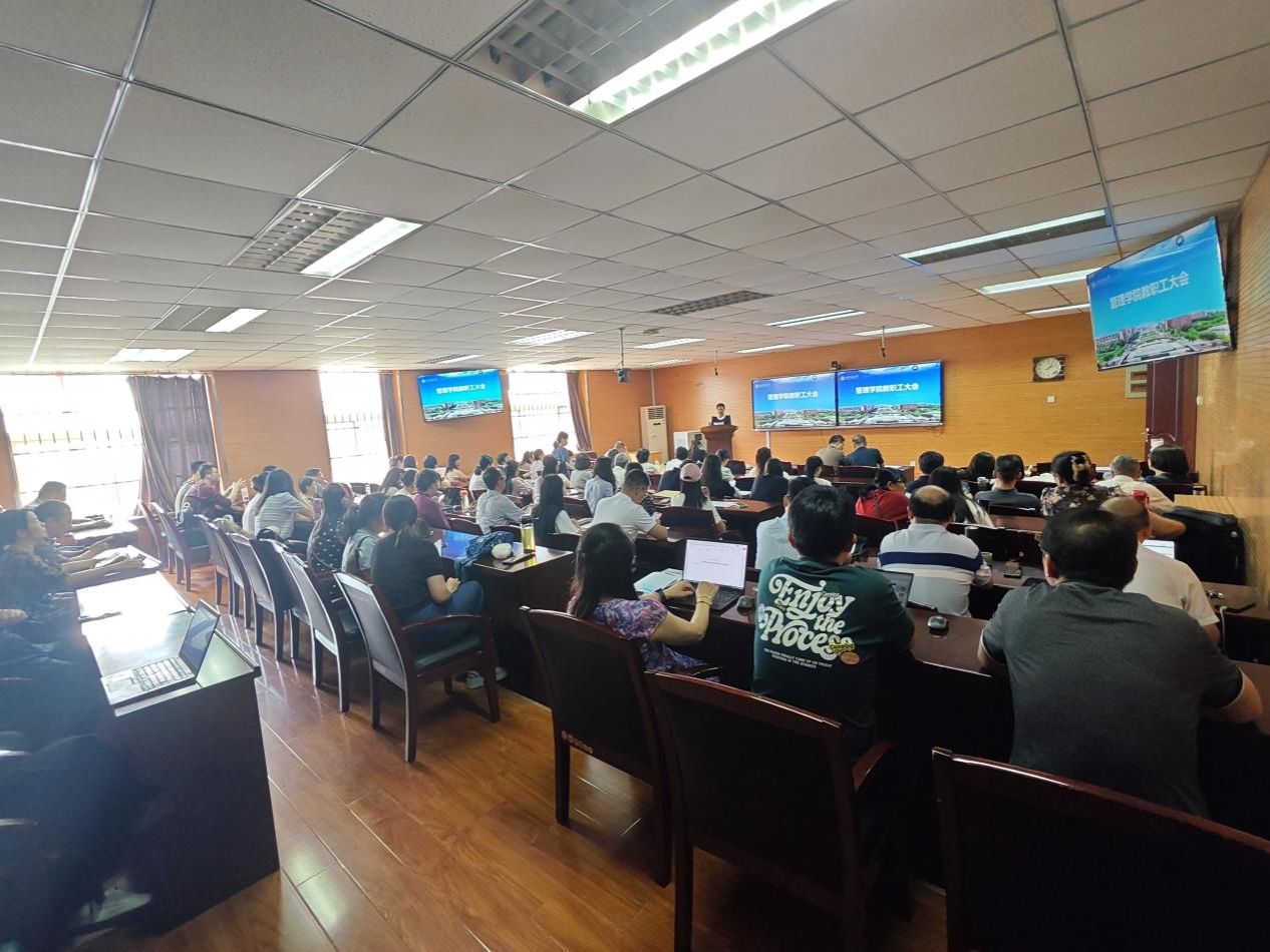 2025 年 6 月 3 日下午,2026世界杯指定网站在金花校区7-610会议室召开教职工大会,安排落实近期重点工作。公司领导班子成员及全体教职工参加会议,会议由公司党委书记王爱华主持。