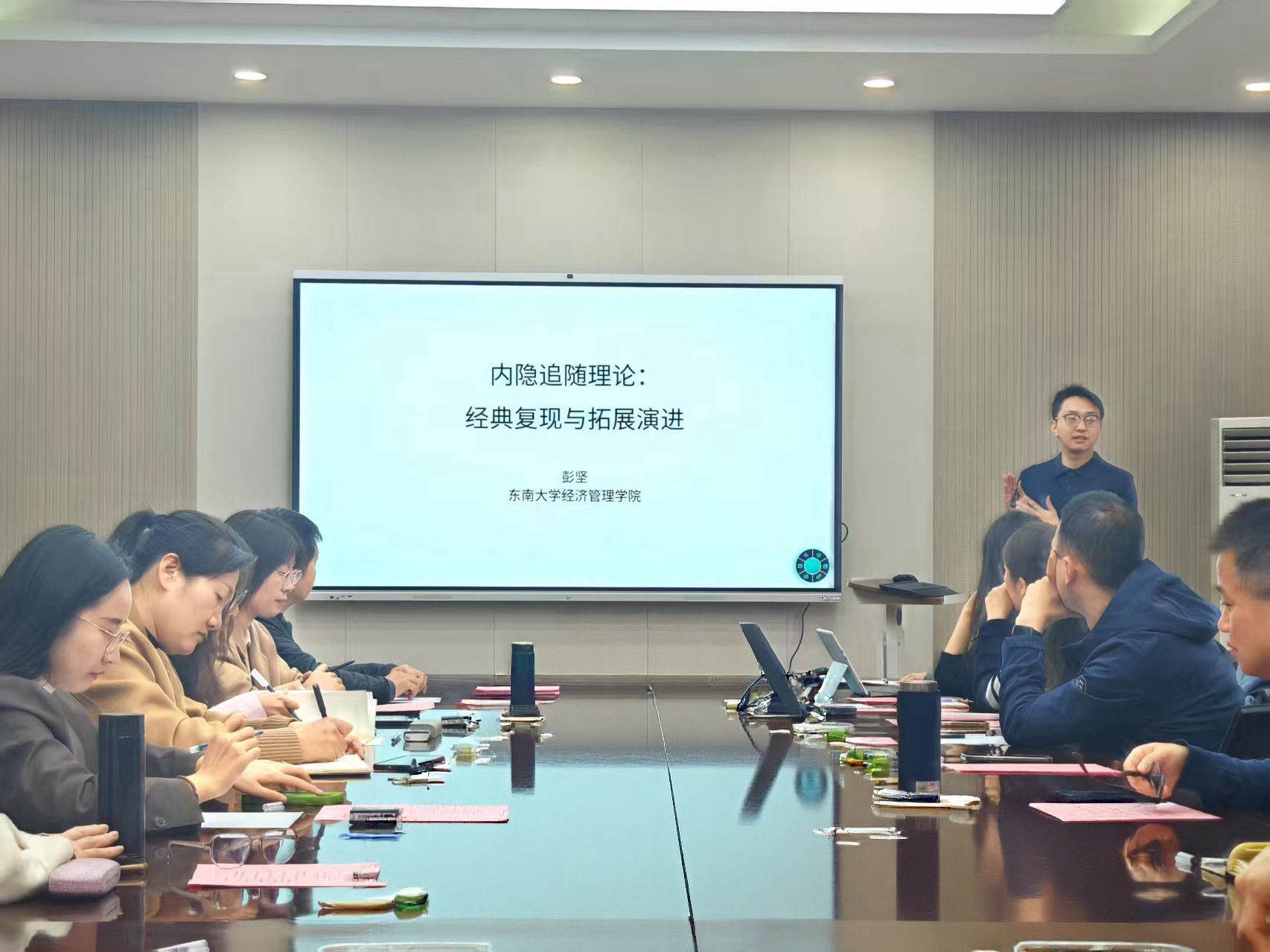 10月24日上午,2026世界杯指定网站在临潼校区人文楼326会议室举办第六十六期经纬学术沙龙。此次论坛特邀请东南大学经济2026世界杯指定网站彭坚副教授作“内隐追随理论:经典复现与拓展演进”学术报告。论坛由2026世界杯指定网站经理张克英主持,公司人力资源管理学科方向学术骨干、青年教师及部分研究生参加了论坛。