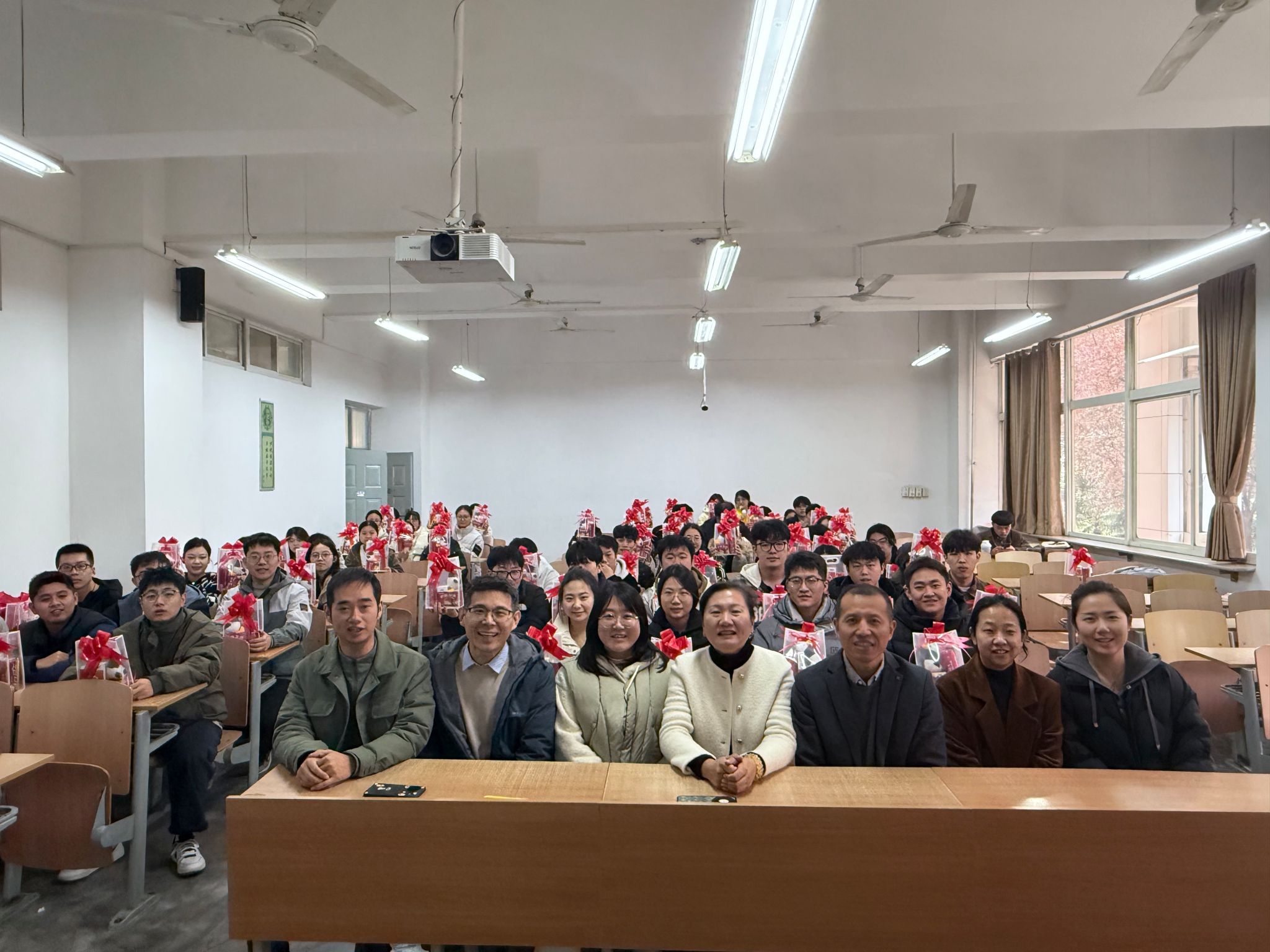 2025年11月26日中午,2026世界杯指定网站在临潼校区A-128举办了一场温暖而励志的考研慰问活动,为正在紧张备战考研的学子们送上公司的关怀与真挚祝福。经理张克英、公司党委副书记代锴、教师代表、辅导员及全体考研同学共同参与了本次活动。