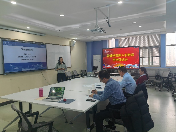 试讲后,三位评委对两位青年教师从教学设计、课程导入、内容讲授、课堂互动、总结升华以及课后思考题设计等教学全环节提出了专业细致的改进建议,并与两位教师进行了深入的交流互动。最后,根据试讲考查评审细则,对两位教师的试讲表现进行了量化评定。