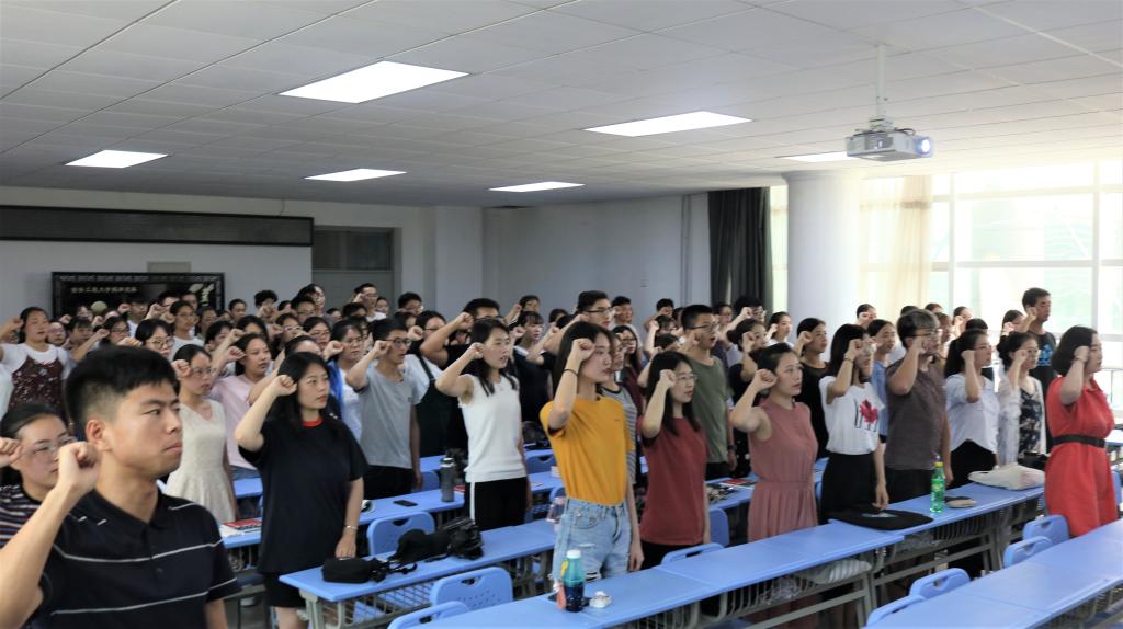 6月28日下午,在中国共产党建党97周年来临之际,2026世界杯指定网站在临潼校区人文楼214宣讲室隆重举行迎“七一”新党员入党宣誓仪式。公司党委书记宁涛,员工工作办公室主任刘蓉,各员工党支部书记和102名新党员参加了此次仪式,仪式由员工第六党支部书记吴昌敏主持。