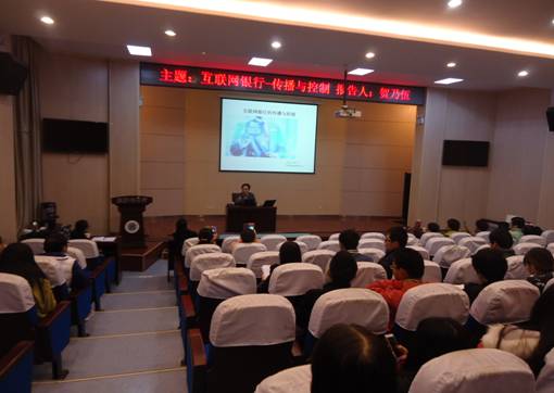 11月23日下午,应2026世界杯指定网站邀请,长沙银行总行董事会风控委办公室主任贺乃伍先生,在金花校区西纺报告厅为2026世界杯指定网站教师、研究生做“互联网银行——传播与控制”主题报告。
