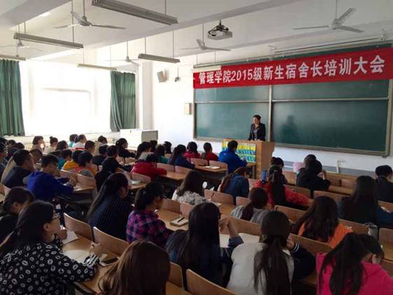 10月14日下午两点,公司在临潼校区D-3110教室举办2015级全体新生宿舍长培训第二讲,邀请负责员工公寓管理张老师进行了主题为“如何创建和谐公寓”的培训讲座,2015级所有新生宿舍长和辅导员王志刚参加了此次讲座。