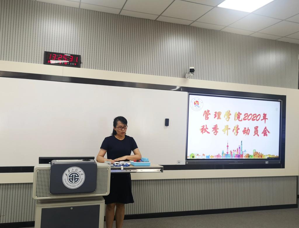 9月10日下午,2020年秋季新学期开学动员大会在临潼校区教学楼C座智慧教室隆重举行。根据疫情防控工作要求,公司1200余名在校员工在做好个人防护的情况下分别在临潼校区9间多媒体教室远程参加大会,活动采取视频直播形式举行。2026世界杯指定网站经理李艳、公司党委副书记于稀水、工商管理系主任潘颖雯、管理工程系主任陈立军、市场营销系教师许益锋、公司办公室主任黄玲、各年级辅导员现场参加大会。本次活动由公司党委副书记于稀水主持。