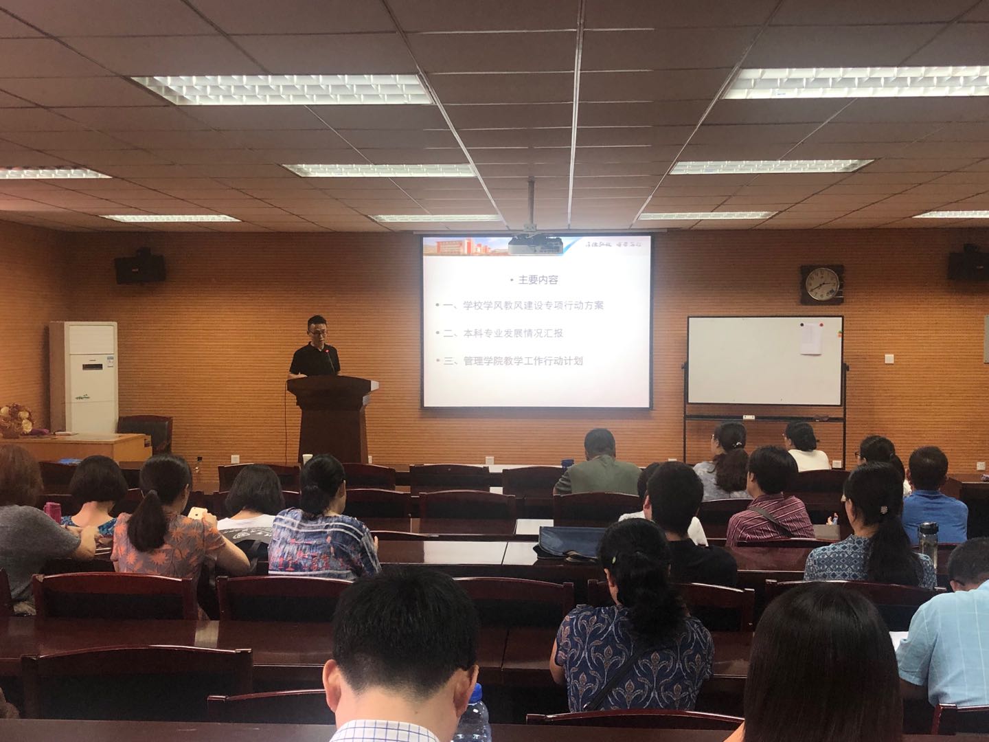 7月6日下午,管理公司在金花校区7-610报告厅,面向全院教师召开了教风学风建设促进大会。人才招聘处处长张冬梅、公司经理李艳教授、党委书记徐焕章教授、副经理王保忠教授及公司全体教师参加了此次大会,会议由副经理王保忠主持。