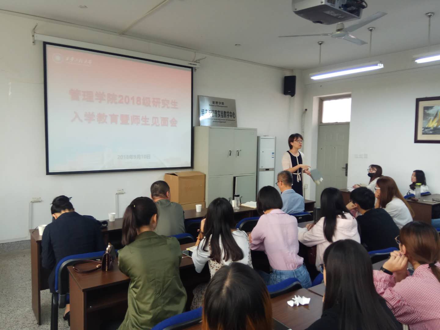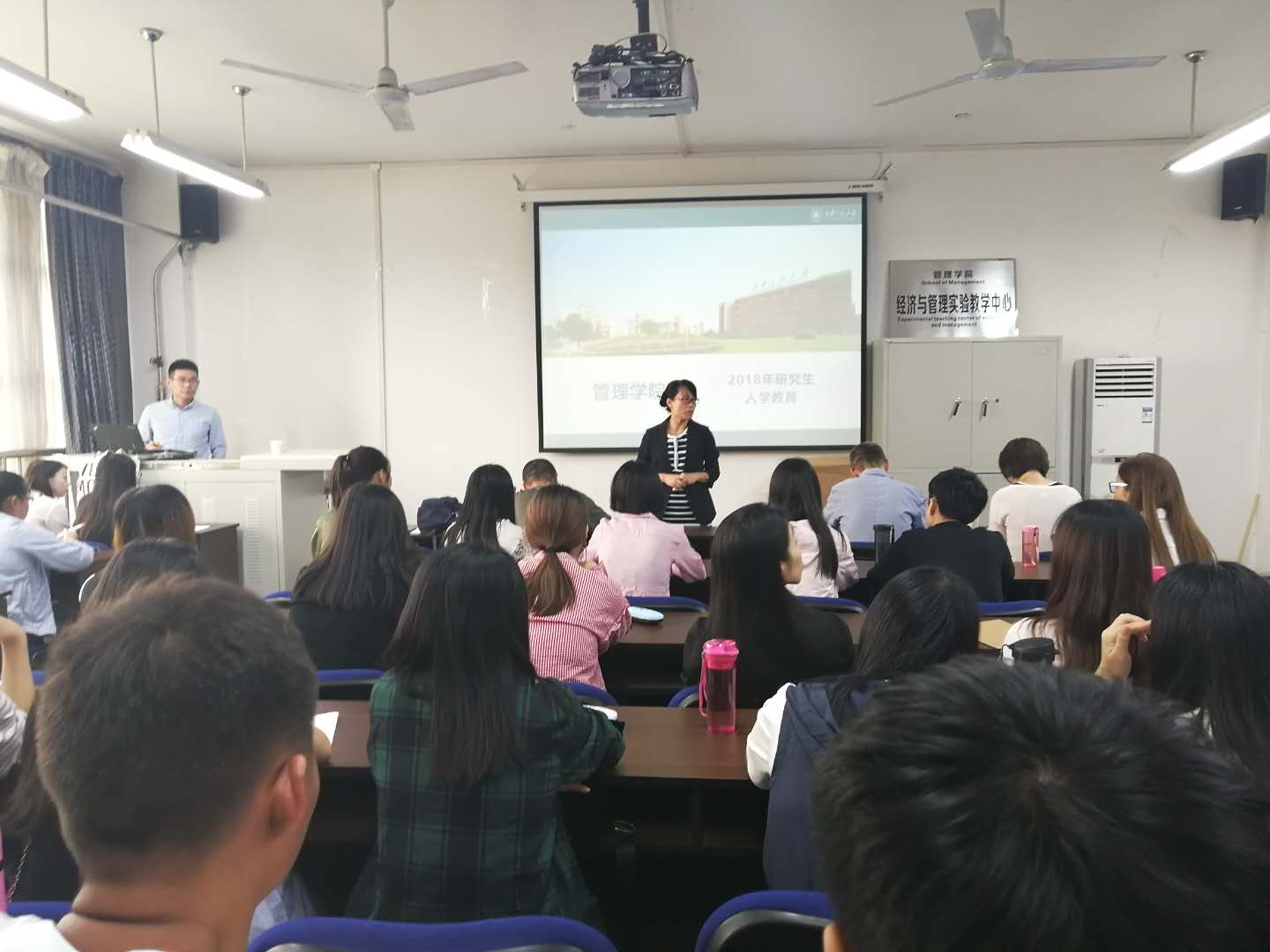首先,李艳对2018级新生的到来表示欢迎,她就公司研究生教育概况、研究生将助体系、研究生教学服务三个方面进行了介绍。随后,李艳从课程、科研、论文、学风、学术道德五方面提出具体要求。她希望同学们在未来三年研究生生涯中保持安心、戒躁的态度,实现至少受到一次科学规范完整的科研训练的追求。