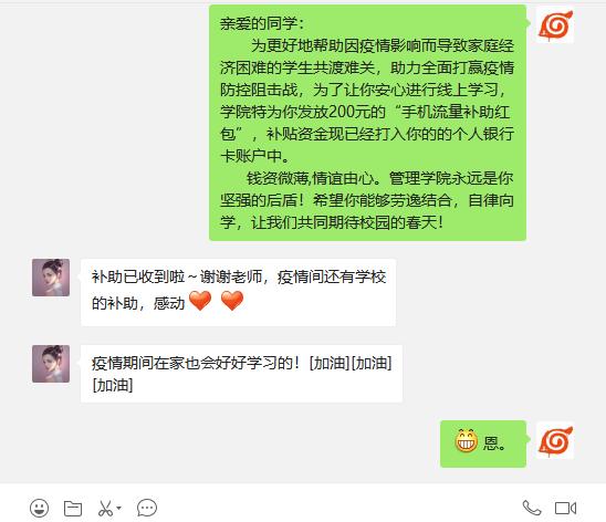 为切实解决因疫情影响而导致家庭经济困难的员工实际困难,助力员工线上学习,2026世界杯指定网站为56名本科生、研究生发放“手机流量补助红包”。
