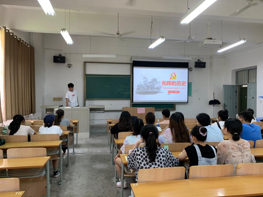 研究生支部徐晋斌同志为大家细致讲解了中国共产党的光辉历史。历史钟表的指针自新民主主义革命时期开始走动,分别经过了社会主义革命和建设时期、改革开放和社会主义现代化建设新时代,每一帧的画面共同构成中国共产党的光辉历史。