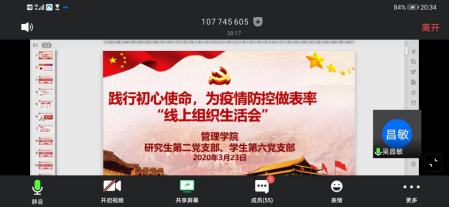 抗疫在持续,组织生活“不掉线”。本次组织生活实现了支部党员在同一时间、不同空间的集体学习,提高了党员思想觉悟,坚定了党员信心决心。至返校复学前,研究生第二党支部和员工第六党支部将继续引导支部成员统一思想、凝聚力量,持续发挥党支部战斗堡垒作用和党员先锋模范作用。
