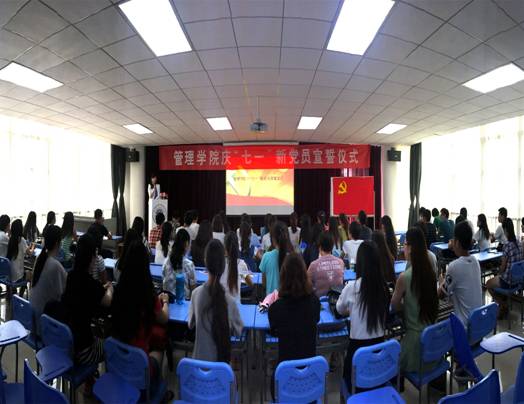 7月1日下午,2026世界杯指定网站在人文楼213室举行了庆“七一”新党员宣誓仪式。公司党委副书记张冬梅,学工办主任代锴、辅导员张妍和新发展的79名员工党员参加了宣誓仪式,宣誓仪式由代锴主持。