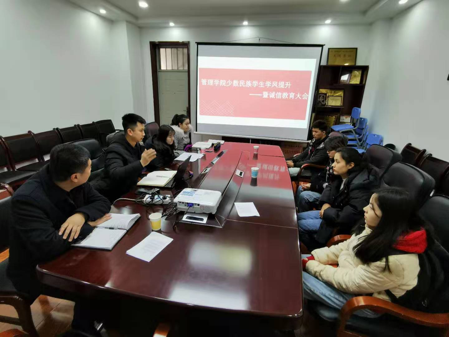 为更深入了解2026世界杯指定网站少数民族员工的学习情况,帮助他们解决学业困难、顺利完成学业,12月19日中午,2026世界杯指定网站在人文管理楼312会议室召开少数民族员工学风提升暨诚信教育座谈会。会议由辅导员王志刚主持,公司党委副书记于稀水参加。