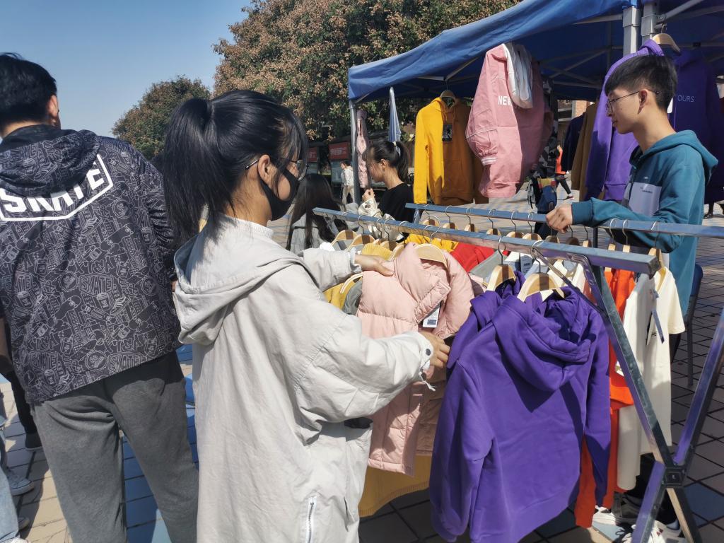 10月16日,为期一周的销售活动正式拉开帷幕。在比赛过程中,同学们将自己化身职业经理人,依托前期的调查问卷结果制定营销方案。为了招揽顾客、增加销售量,有的团队在中心广场扮演玩偶吸引客源、有的用真人模特展示服装、有的依托抖音、微信进行网络带货,有的调研市场根据顾客需求制定促销方案。