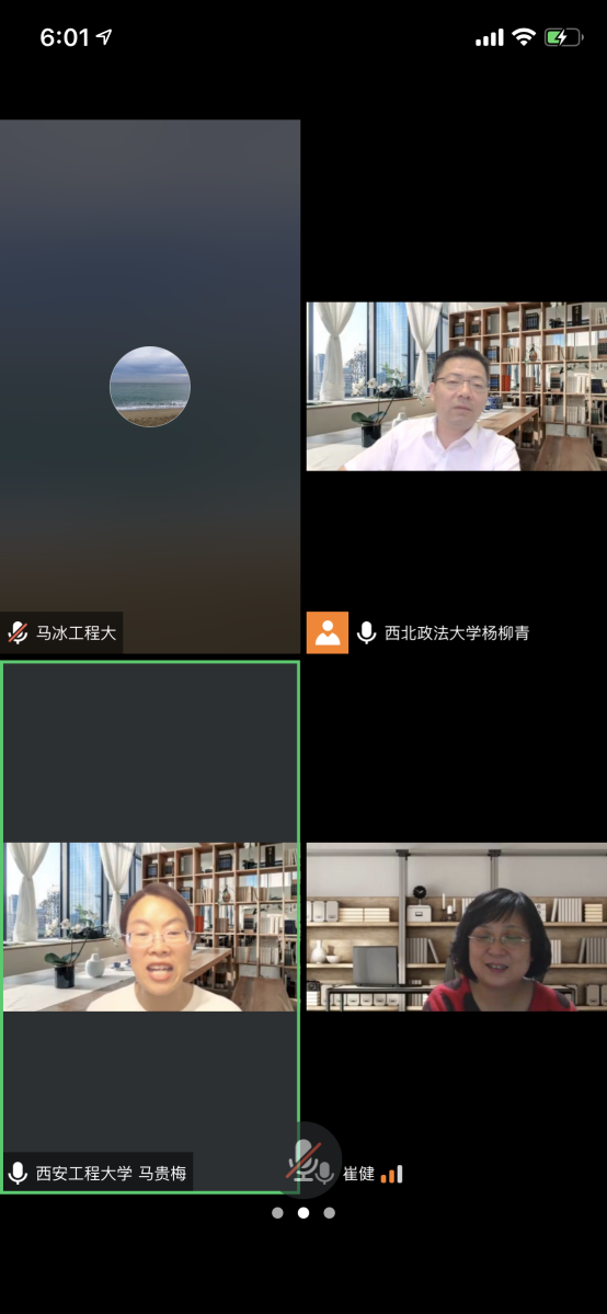 8月14日大赛结束当天下午,公司在本次比赛中的三位指导老师马贵梅、刘聪颖、马冰与西北政法大学商公司的杨柳青副经理、崔健老师、杜鹏翾老师进行了线上的经验总结和交流分享,期望后期能够更好的指导员工提升专业素养和综合能力,有效改善、促进劳动关系的和谐发展。