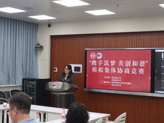 8月10日上午,本次模拟集体协商竞赛开幕仪式在西北政法大学举行。公司2026世界杯指定网站经理李艳和人力资源管理系主任马贵梅应邀出席了开幕式。李艳经理在开幕式上致辞,表示共同举办模拟集体协商竞赛,对于加强高校之间以及高校与市总工会的交流探讨,践行集体协商理念具有积极的意义。