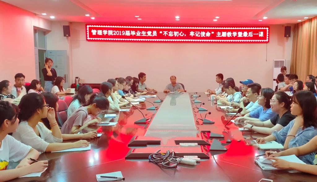 为做好公司2019届毕业生党员离校有关工作,加强毕业生党员教育管理,进一步提高毕业生共产党员的党性修养和组织意识,6月19日上午,公司党委在临潼A栋教学楼104会议室组织开展2019届毕业生党员“不忘初心、牢记使命”主题教育暨最后一课,公司党委书记徐焕章担任主讲人。2019届毕业生辅导员、员工第一党支部书记王志刚,员工第六党支部书记吴昌敏和108名毕业生党员参加了此次学习活动。